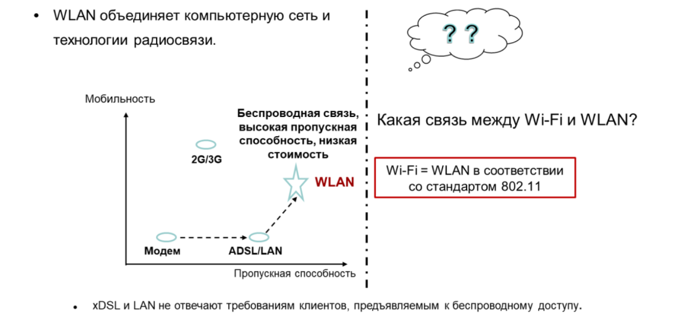 По сравнению с ADSL и LAN, WLAN предоставляет HIS (услугу