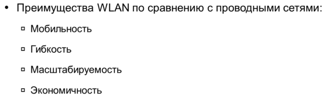 WLAN имеет следующие преимущества по сравнению с проводным доступом: