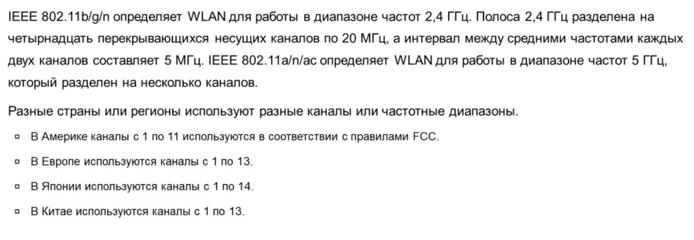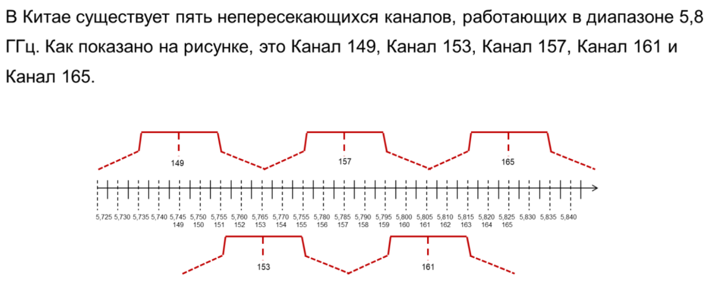 неперекрывающихся канала 20 МГц. В Китае пять неперекрывающихся каналов 20