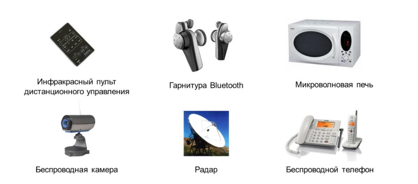 беспроводные телефоны, радары, беспроводные датчики и цифровые спутники.