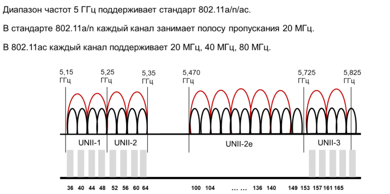5,15 до 5,35 ГГц относятся к диапазону 5 ГГц. Стандарт 802.11 поддерживает