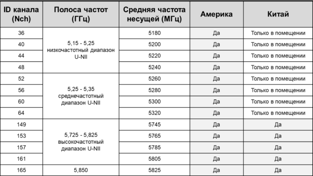 Восемь каналов предназначены для низкочастотных диапазонов U-NII и