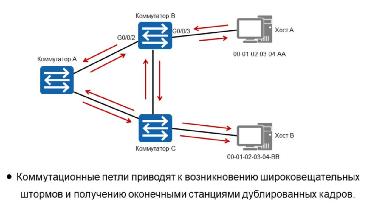 информацией друг с другом обнаруживают петли в сети и блокируют