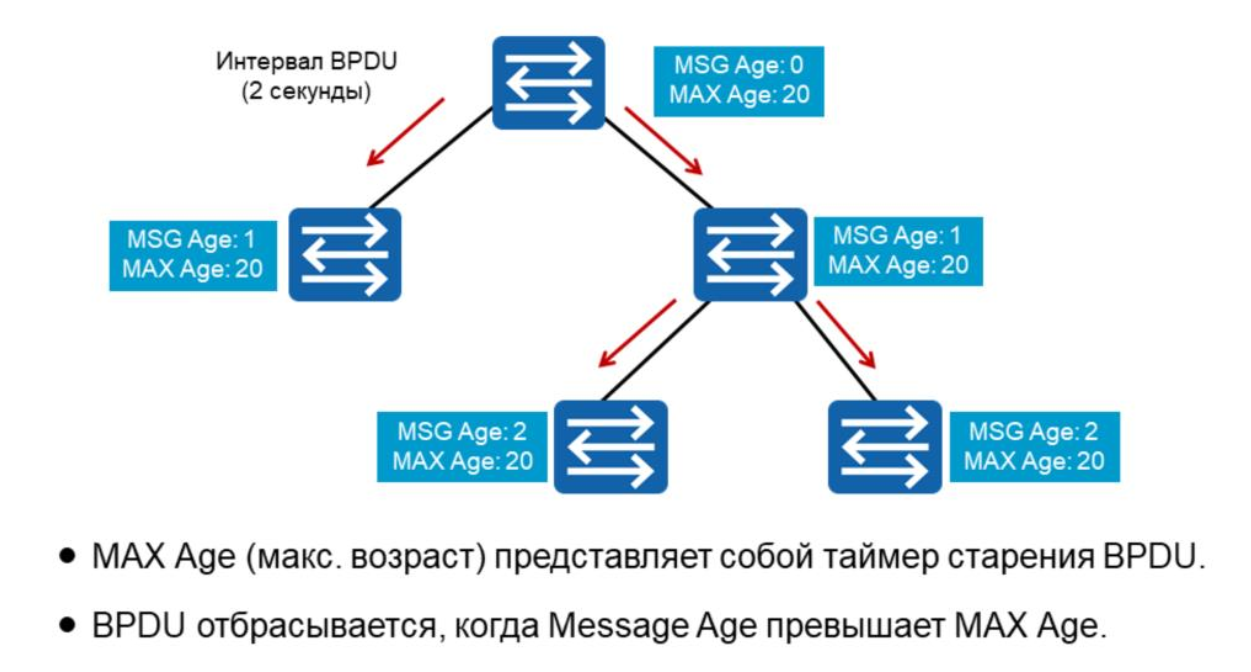 течение периода (MAX Age + forward delay) или 35 секунд по умолчанию