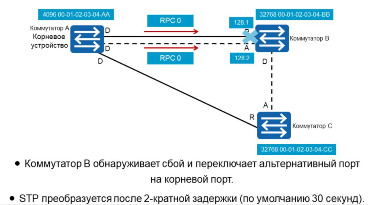 текущий корневой порт становится неактивным. Этот сбой вызывает