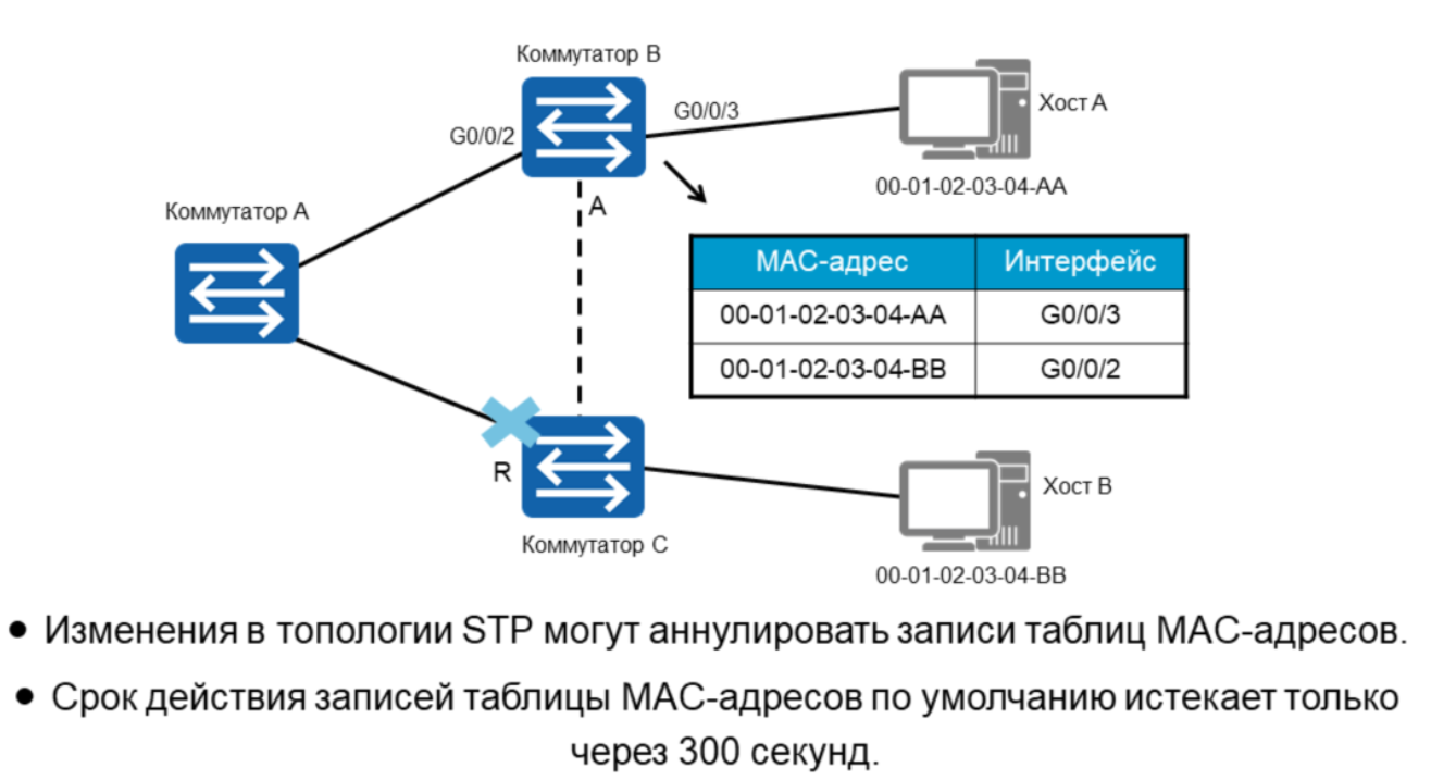 топологии и влияния на таблицу MAC-адресов. Записи, относящиеся к