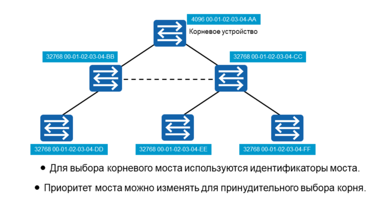 идентификатор моста), выбирается в качестве корневого моста для сети.