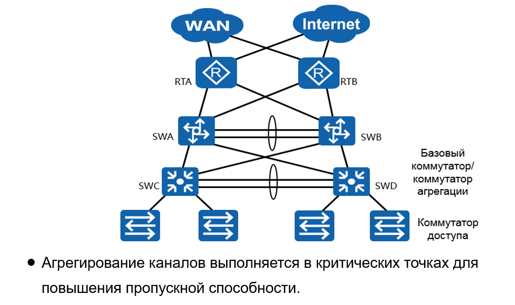 агрегирование каналов применяется в тех сегментах корпоративной сети, где