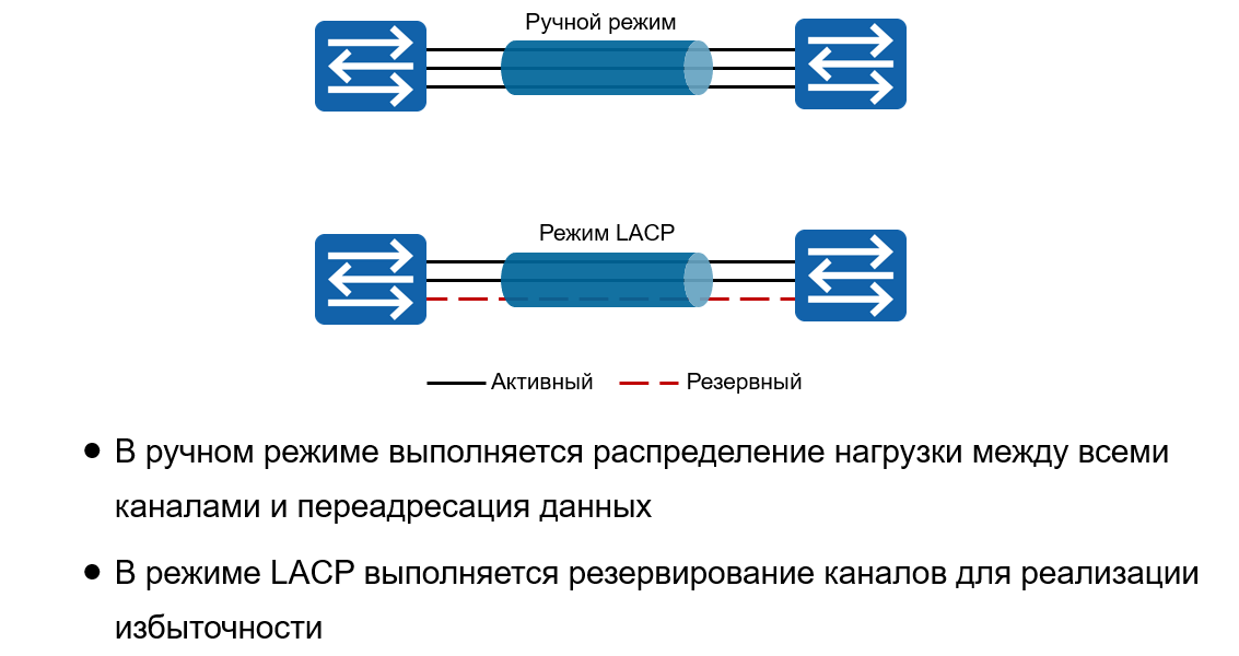 вручную и режим статического агрегирования с помощью LACP. В режиме