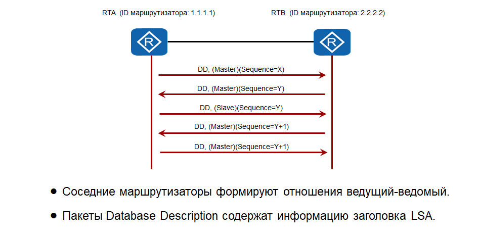 маршрутизатора формируют отношения «ведущий-ведомый». Каждый пакет Database Description имеет