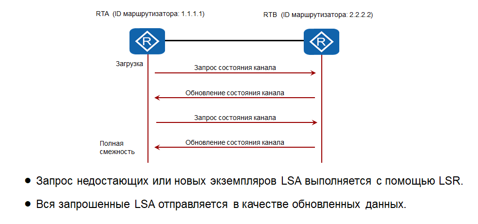 необходимо запросить этот более новый LSA. Такая отправка и получение пакетов Database Description