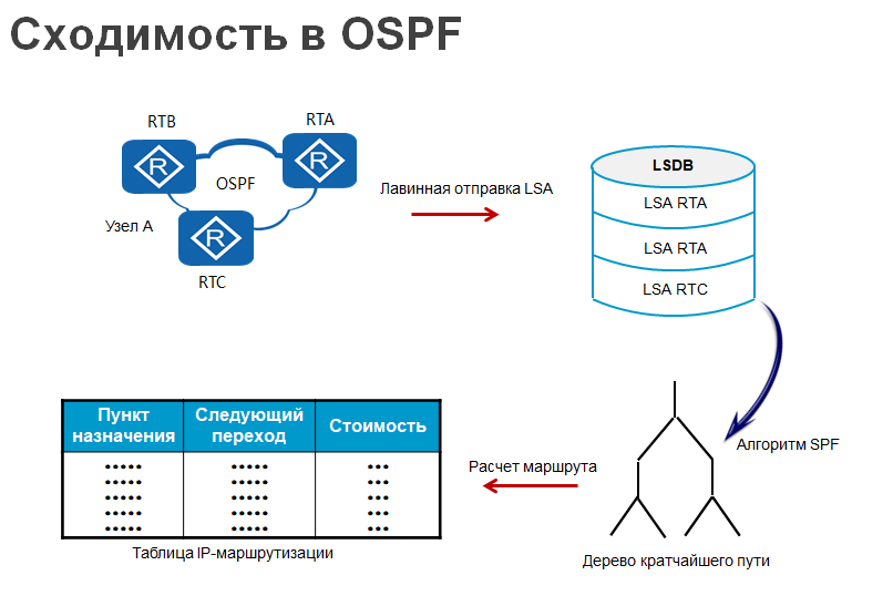 •Для достижения сходимости OSPF