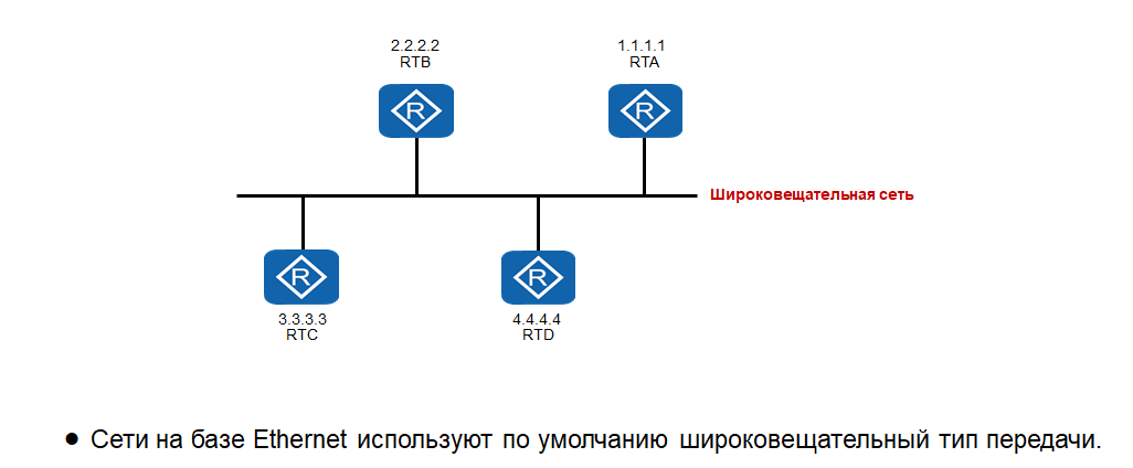 установлена, то в OSPF будет автоматически применяться тип широковещательной