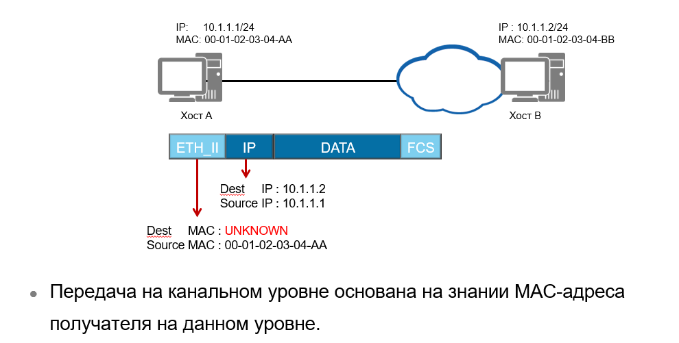обеспечивая достижимость IP-узла. Следующий узел Ethernet должен быть обнаружен до завершения инкапсуляции данных.
