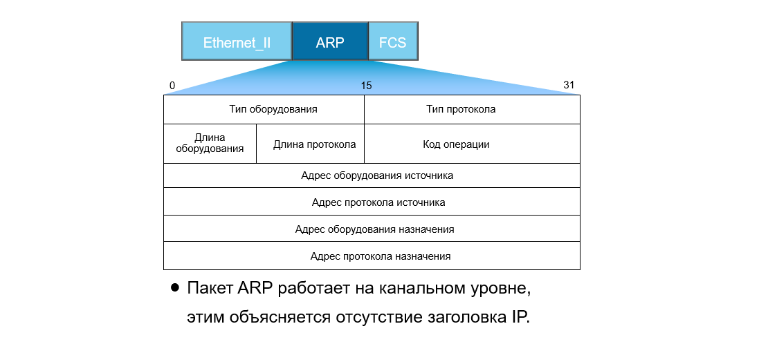 значению поля «тип» определит, что заголовком пакета является ARP,