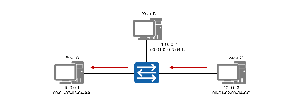 внесен в таблицу кэша ARP исходного хоста (Хост A).