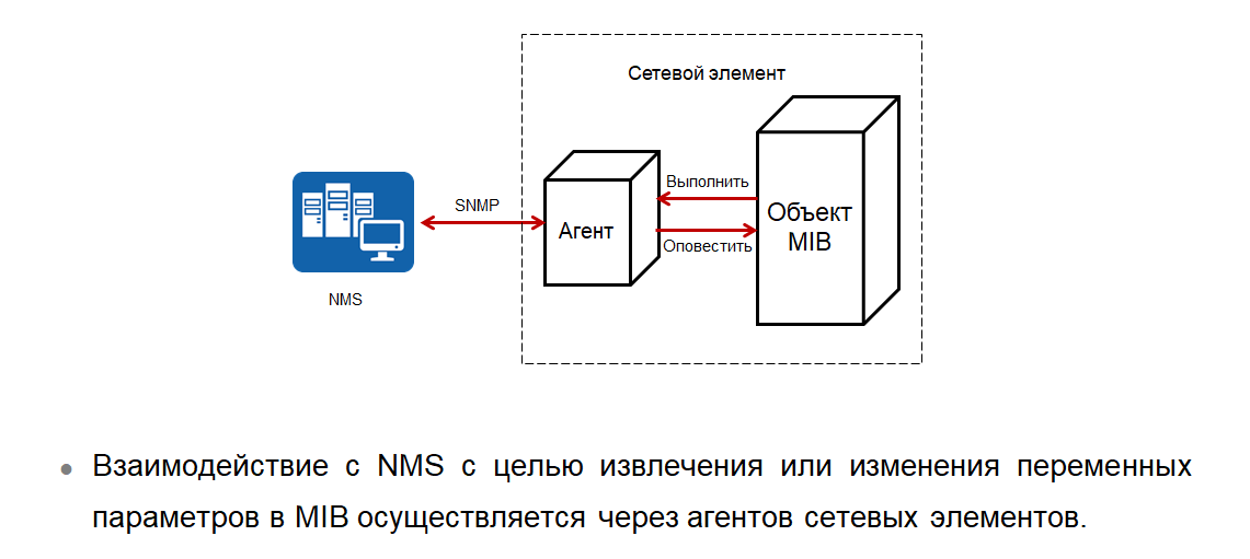 выполнение функций управления сетью, запрашиваемых NMS. MIB хранит ряд