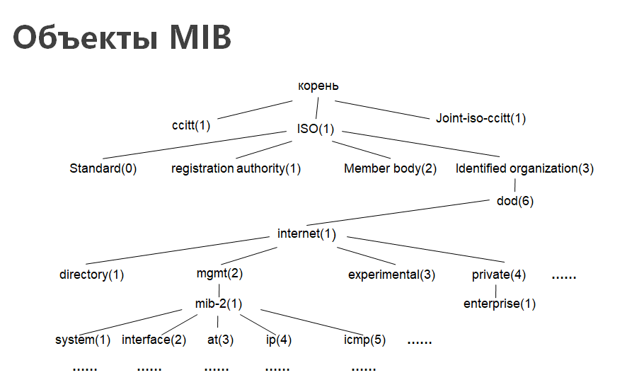 В базе SNMP MIB используется структура дерева, аналогичная структуре системы