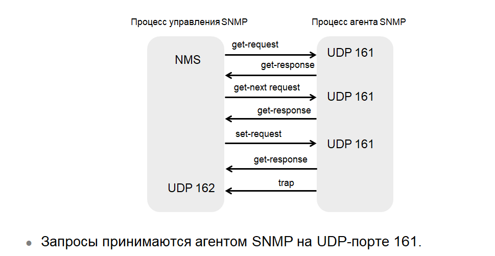 есть пакетов SNMP, которые передаются между процессами управления и агента.