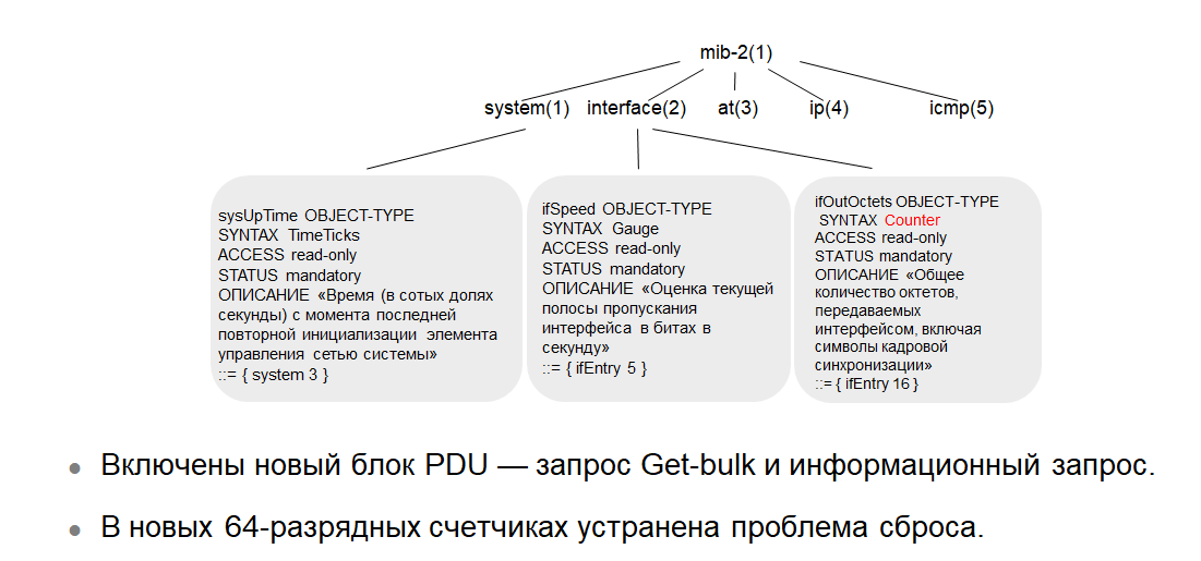 объекты также используют счетчики в качестве синтаксиса, который в SNMP версии
