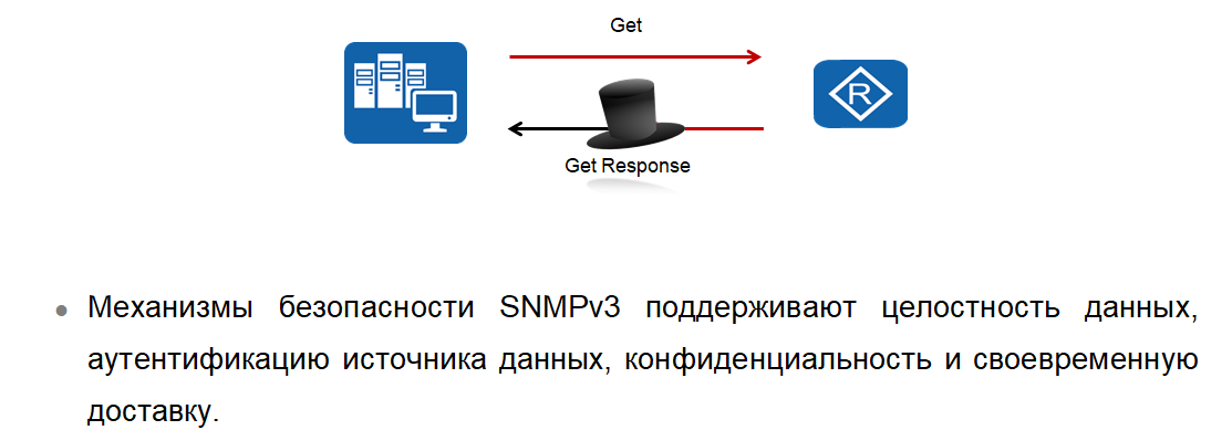 из ключевых улучшений SNMPv3 является безопасность передачи информации объекта