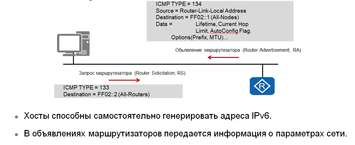 автоматической настройки адреса IPv6 используется сообщение Router Discovery,