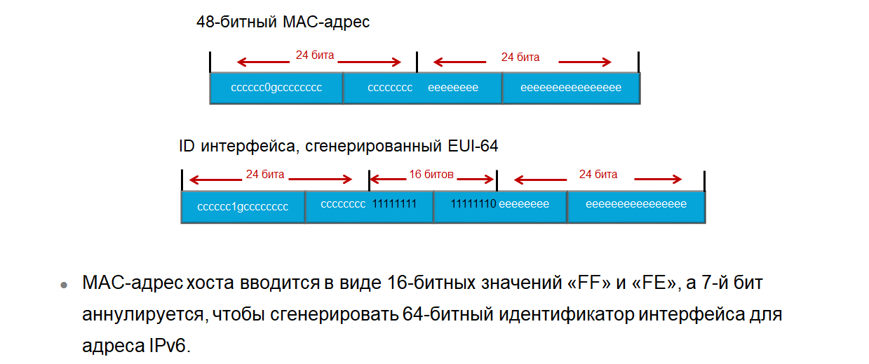 равно 0, MAC-адрес уникален глобально. Во время преобразования процесс EUI-64
