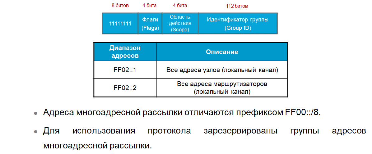 многоадресной рассылки на все узлы (ALL-node) и группе многоадресной рассылки