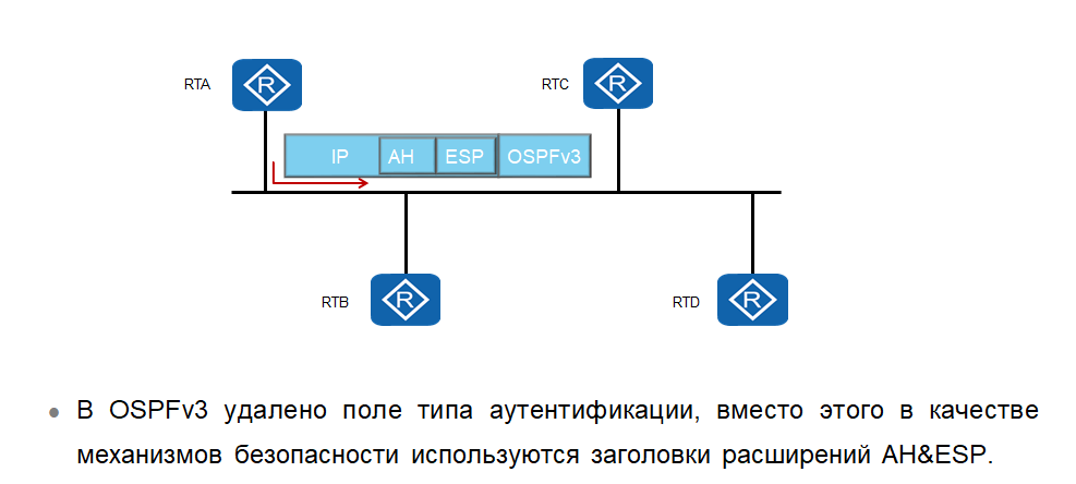 OSPFv3 применяет механизмы Authentication Header и Encapsulating Security,