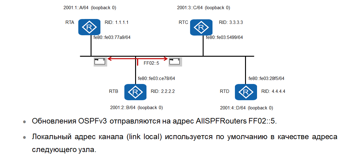 работающие с OSPFv3, должны быть готовы к приему пакетов, отправленных на этот